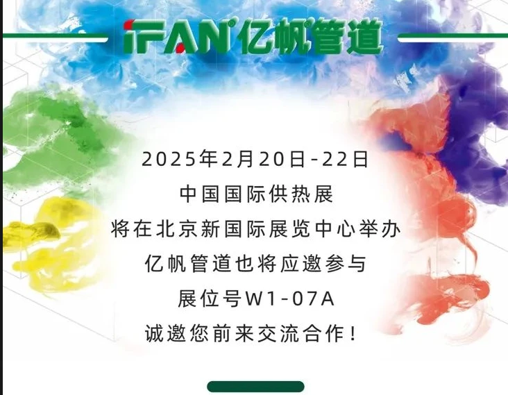 作为行业领先品牌,亿帆管道在水暖领域不断探索创新,为消费者提供先进的产品和解决方案,推动行业发展。2025 年 2 月 20 日至 22 日,中国国际供热通风空调、卫浴及舒适家居系统展览会将在北京新国际展览中心举行,亿帆管道应邀参展,展位号为 W1 - 07A。